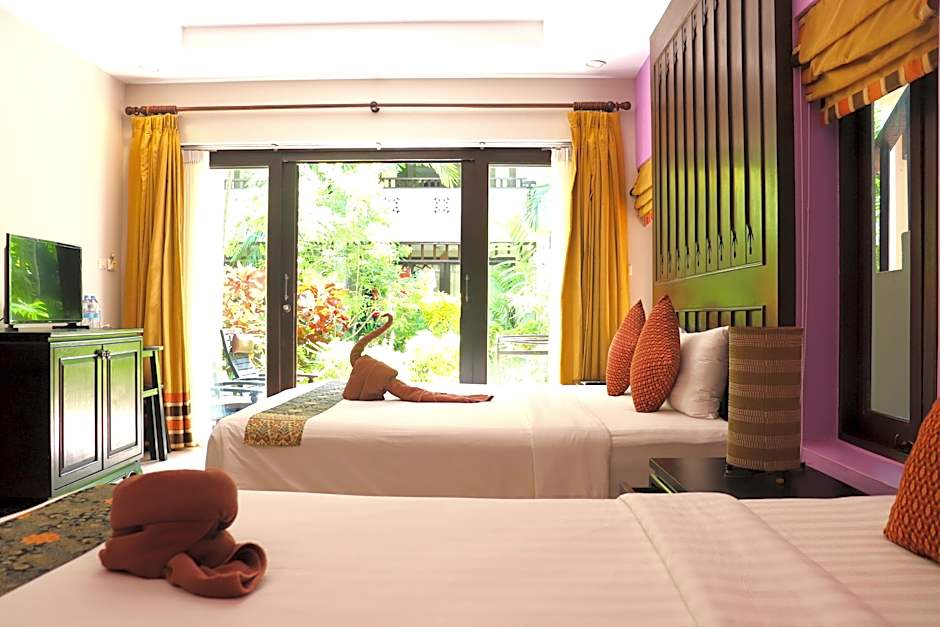 Standard Double Room Garden View are rooms located on the second floor of our two-stories building surrounded by green tropical plants with private balcony.